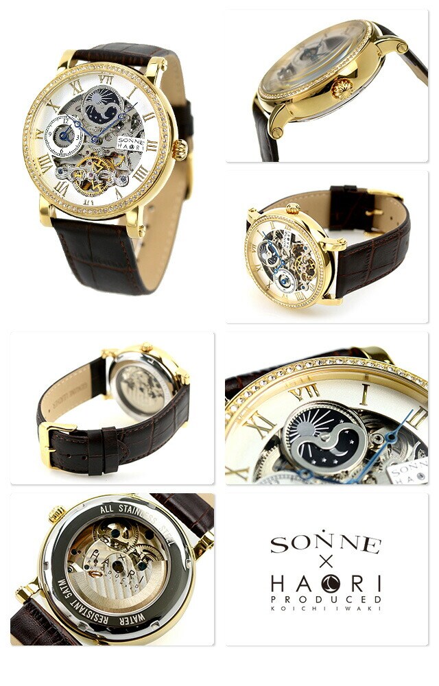 ゾンネ 腕時計 自動巻き ハオリ 岩城滉一 コラボモデル 44mm サン&ムーン メンズ 時計 SONNE H013YGZ-SV スケルトン×ダークブラウン