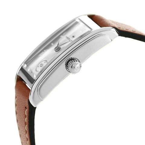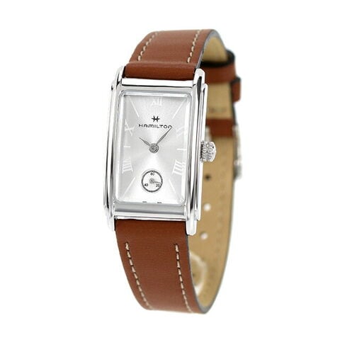 3年保証キャンペーン ハミルトン アメリカンクラシック アードモア 18.7mm スイス製 レディース 腕時計 H11221550 HAMILTON AMERICAN CLASSIC Ardmore Quartz アナログ シルバー ブラウン ◆HAMILTON(ハミルトン)はアメリカ発祥の老舗ブランドです。創業翌年に誕生した懐中時計「ブロードウェイ・リミテッド」は、他の時計よりも正確に時を刻むことから鉄道用時計として採用されました。その後も航空用時計や軍用時計として採用されるなど、品質の高さと流行にながされない独自のデザインが世界中の人々に支持されています。 1935年に発表されたモデルからインスピレーションを得て、ケースは腕元にぴったりとフィットするようにカーブを描き、ダイヤルのスモールセコンドやローマ数字、繊細なインデックスによって、どんなスタイルにもぴったりのアールデコの魅力を引き出しています。