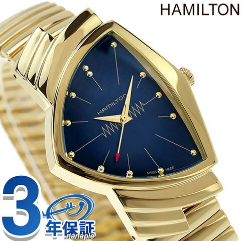 3年保証キャンペーン ハミルトン ベンチュラ 32.3mm スイス製 メンズ 腕時計 H24301141 HAMILTON VENTURA アナログ ブルー ゴールド ◆HAMILTON(ハミルトン)はアメリカ発祥の老舗ブランドです。創業翌年に誕生した懐中時計「ブロードウェイ・リミテッド」は、他の時計よりも正確に時を刻むことから鉄道用時計として採用されました。その後も航空用時計や軍用時計として採用されるなど、品質の高さと流行にながされない独自のデザインが世界中の人々に支持されています。 時計史上の革命児「ベンチュラ」。エルヴィス・プレスリーの大ヒットシングル『ブルー・スエード・シューズ』にインスパイアされたモデル。ニッケルの時針、分針、秒針を備え、高い信頼性を誇るクォーツムーブメントを搭載しています。