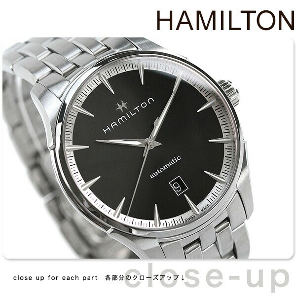 3年保証キャンペーン ハミルトン ジャズマスター オート 40mm スイス製 自動巻き メンズ 腕時計 H32475130 HAMILTON JAZZMASTER AUTO アナログ ブラック ◆HAMILTON(ハミルトン)はアメリカ発祥の老舗ブランドです。創業翌年に誕生した懐中時計「ブロードウェイ・リミテッド」は、他の時計よりも正確に時を刻むことから鉄道用時計として採用されました。その後も航空用時計や軍用時計として採用されるなど、品質の高さと流行にながされない独自のデザインが世界中の人々に支持されています。 洗練されたデザインが光る「ジャズマスター オート」は、オンオフ様々なシーンで使えるモダンなタイムピース。シーンを問わずお使いいただけます。 機械式腕時計