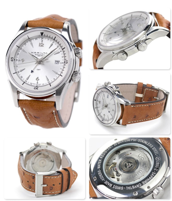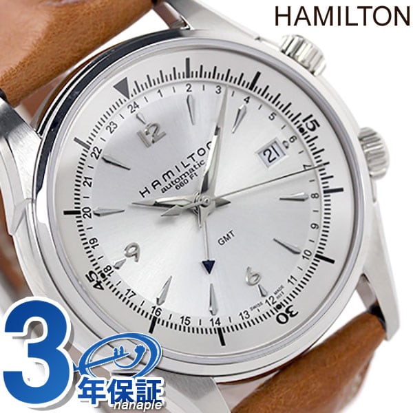 3年保証キャンペーン ハミルトン 腕時計 JAZZMASTER TRAVELER 2 自動巻き メンズ GMT シルバー×ブラウン レザーベルト HAMILTON H32625555 HAMILTON(ハミルトン)はアメリカ発祥の老舗ブランドです。創業翌年に誕生した懐中時計「ブロードウェイ・リミテッド」は、他の時計よりも正確に時を刻むことから鉄道用時計として採用されました。その後も航空用時計や軍用時計として採用されるなど、品質の高さと流行にながされない独自のデザインが世界中の人々に支持されています。 ハミルトン創業と同時期に誕生し、ともにアメリカで歳月を重ねてきたジャズ・ミュージックにインスパイアされたモデル。日付表示や24時間表示といった実用性のある機能を搭載しています。 機械式腕時計