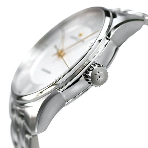 3年保証キャンペーン ハミルトン ジャズマスター オート 40mm スイス製 自動巻き メンズ 腕時計 H42535150 HAMILTON JAZZMASTER AUTO アナログ シルバー ◆HAMILTON(ハミルトン)はアメリカ発祥の老舗ブランドです。創業翌年に誕生した懐中時計「ブロードウェイ・リミテッド」は、他の時計よりも正確に時を刻むことから鉄道用時計として採用されました。その後も航空用時計や軍用時計として採用されるなど、品質の高さと流行にながされない独自のデザインが世界中の人々に支持されています。 ローマンインデックスが洗練されたデザインを引き立てる「ジャズマスター オート」。オンオフ様々なシーンで使えるモダンなタイムピース。シーンを問わずお使いいただけます。 機械式腕時計