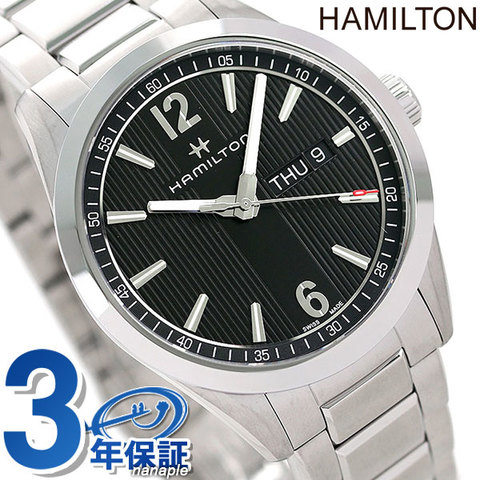 3年保証キャンペーン ハミルトン ブロードウェイ デイデイト クオーツ 40MM スイス製 メンズ 腕時計 H43311135 HAMILTON BROADWAY DAY DATE QUARTZ 40MM アナログ ブラック ◆HAMILTON(ハミルトン)はアメリカ発祥の老舗ブランドです。創業翌年に誕生した懐中時計「ブロードウェイ・リミテッド」は、他の時計よりも正確に時を刻むことから鉄道用時計として採用されました。その後も航空用時計や軍用時計として採用されるなど、品質の高さと流行にながされない独自のデザインが世界中の人々に支持されています。 ハミルトン創業と同時期に誕生し、ともにアメリカで歳月を重ねてきた『ジャズ・ミュージック』にインスパイアされ、誕生したモデル。12時位置に配置されたブランドロゴがポイント。オン・オフの充実した時を過ごす大人のスタイリッシュなタイムピースです。 機械式腕時計