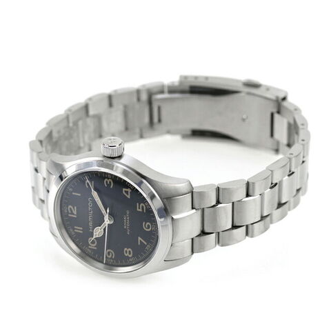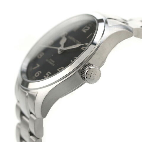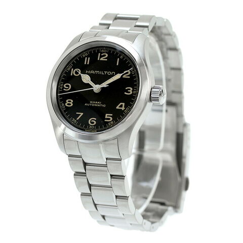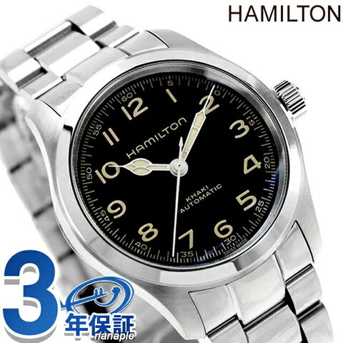 3年保証キャンペーン ハミルトン カーキ フィールド マーフ オート 38mm スイス製 メンズ レディース 腕時計 H70405130 HAMILTON KHAKI FIELD Murph Auto アナログ ブラック 黒 ◆HAMILTON(ハミルトン)はアメリカ発祥の老舗ブランドです。創業翌年に誕生した懐中時計「ブロードウェイ・リミテッド」は、他の時計よりも正確に時を刻むことから鉄道用時計として採用されました。その後も航空用時計や軍用時計として採用されるなど、品質の高さと流行にながされない独自のデザインが世界中の人々に支持されています。 映画ファンにはアイコニックな存在の元祖「マーフウォッチ」が、モダンなアレンジを加えて登場。ブラックダイヤルに配された「カーキ フィールド マーフ」の数字はやや膨らみを持ち、視認性が向上。また、カテドラル針がビンテージルックを添えます。
