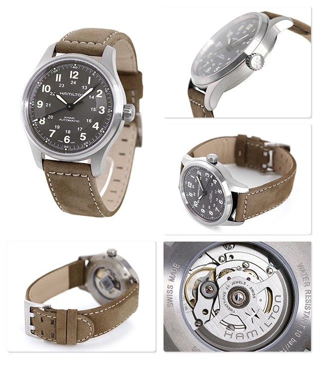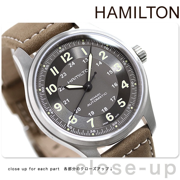 3年保証キャンペーン ハミルトン カーキ フィールド チタニウム オート 42mm チタン スイス製 自動巻き メンズ 腕時計 H70545550 HAMILTON KHAKI FIELD TITANIUM AUTO アナログ ブラック×ブラウン 革ベルト ◆HAMILTON(ハミルトン)はアメリカ発祥の老舗ブランドです。創業翌年に誕生した懐中時計「ブロードウェイ・リミテッド」は、他の時計よりも正確に時を刻むことから鉄道用時計として採用されました。その後も航空用時計や軍用時計として採用されるなど、品質の高さと流行にながされない独自のデザインが世界中の人々に支持されています。 100年以上にわたって、数多くの時計を米軍に提供してきたハミルトン。長年に亘る知見がハミルトンのフィールドウォッチには活かされています。「カーキ フィールド チタニウム オート」は、軽量で高い機能性を備え、ミリタリースタイルを融合。冒険心を掻き立てます。 機械式腕時計