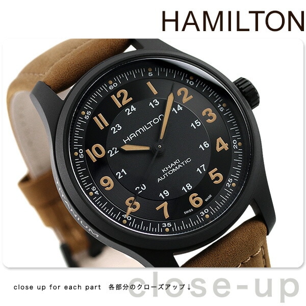 3年保証キャンペーン ハミルトン カーキ フィールド チタニウム オート 42mm チタン スイス製 自動巻き メンズ 腕時計 H70665533 HAMILTON KHAKI FIELD TITANIUM AUTO アナログ 革ベルト ブラック×ブラウン ◆HAMILTON(ハミルトン)はアメリカ発祥の老舗ブランドです。創業翌年に誕生した懐中時計「ブロードウェイ・リミテッド」は、他の時計よりも正確に時を刻むことから鉄道用時計として採用されました。その後も航空用時計や軍用時計として採用されるなど、品質の高さと流行にながされない独自のデザインが世界中の人々に支持されています。 「カーキ フィールド チタニウム オート」は、軽量で高い機能性を備え、ミリタリースタイルを融合。冒険心を掻き立てます。 機械式腕時計