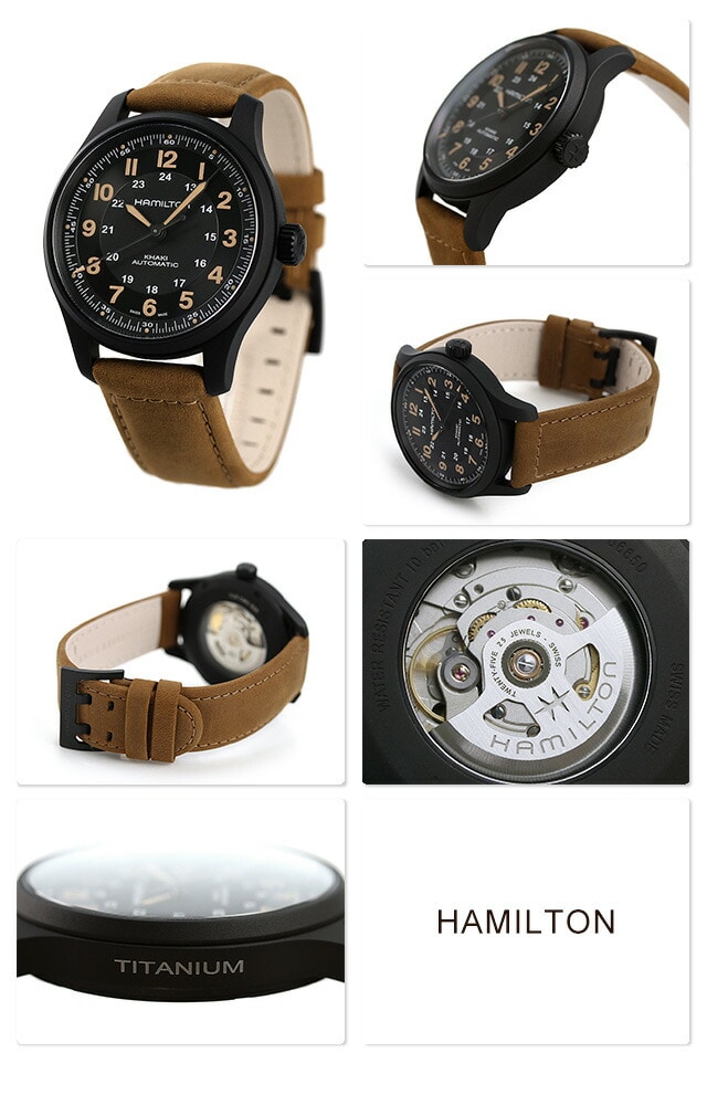 ハミルトン 時計 カーキ フィールド オート 42mm チタン 自動巻き メンズ 腕時計 H70665533 HAMILTON ブラック×ブラウン
