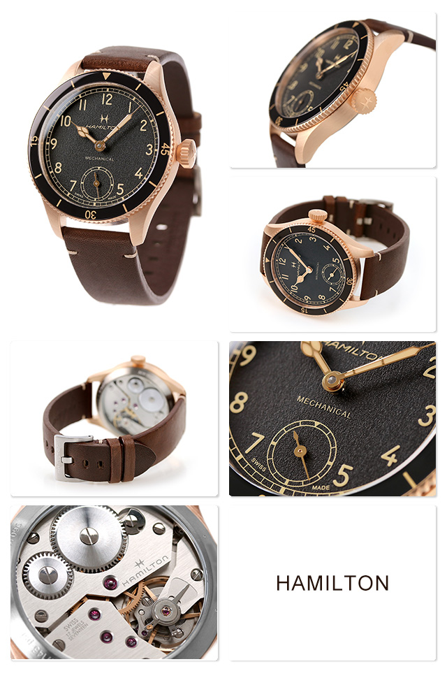 3年保証キャンペーン ハミルトン カーキ アビエーション パイロット パイオニア 43mm チタン スイス製 自動巻き メンズ 腕時計 H76709530 HAMILTON KHAKI AVIATION PILOT PIONEER BRONZE アナログ ブラック ブラウン 黒 革ベルト ◆HAMILTON(ハミルトン)はアメリカ発祥の老舗ブランドです。創業翌年に誕生した懐中時計「ブロードウェイ・リミテッド」は、他の時計よりも正確に時を刻むことから鉄道用時計として採用されました。その後も航空用時計や軍用時計として採用されるなど、品質の高さと流行にながされない独自のデザインが世界中の人々に支持されています。 第二次世界大戦中アメリカ軍に使用されていた、当時最先端のポケットウォッチ「モデル23」からインスピレーションを得た「カーキ アビエーション パイロット パイオニア」。その独特なデザインは、ハミルトンのアビエーションとミリタリーの歴史へのトリビュートです。43mmサイズのケースには、艶やかなステンレススチールケースと、経年変化によって個性を生み出すブロンズケースをライナップしています。 機械式腕時計