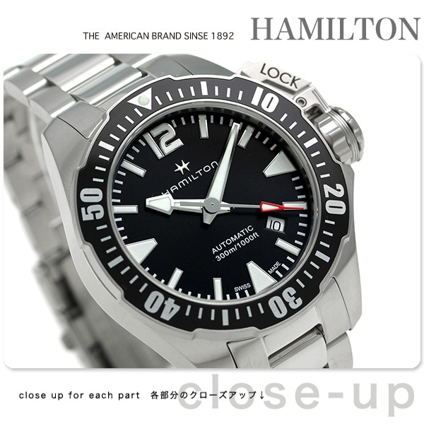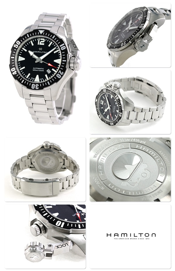 3年保証キャンペーン ハミルトン ダイバーズ カーキ ネイビー オープン ウォーター オート 42mm スイス製 自動巻き メンズ 腕時計 HAMILTON KHAKI NAVY OPEN WATER AUTO 42mm H77605135 アナログ ブラック ◆HAMILTON(ハミルトン)はアメリカ発祥の老舗ブランドです。創業翌年に誕生した懐中時計「ブロードウェイ・リミテッド」は、他の時計よりも正確に時を刻むことから鉄道用時計として採用されました。その後も航空用時計や軍用時計として採用されるなど、品質の高さと流行にながされない独自のデザインが世界中の人々に支持されています。 1951年の名作映画・フロッグメンに登場した潜水時計からインスピレーションを受けてつくられた腕時計。スクリュー式リューズカバーを採用した、本格ダイバーズウォッチです。秒針の先端に施されたレッドカラーがアクセントに。 機械式腕時計