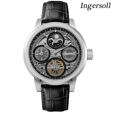 インガソール ザ アーク ムーンフェイズ オープンハート メンズ 腕時計 I16001 INGERSOLL THE ARC GENTS AUTOMATIC アナログ ブラック スケルトン 黒 ◆Ingersoll(インガソール)は1892年アメリカで誕生した老舗時計メーカー。世界で初めて「1ドル」で懐中時計を生産し販売。「ダラーウォッチ」という愛称で、世界に知れ渡りました。設立者であるインガソール兄弟の精神を守り、高品質で精密な時計を作り続けています。 スケルトンダイヤルが魅力のモデル。ムーンフェイズがクラシックな雰囲気を演出しています。シンプルなデザインで、カジュアルからビジネスまで様々なシーンで活躍します。誕生日や記念日などのプレゼントにもおすすめです。 機械式腕時計