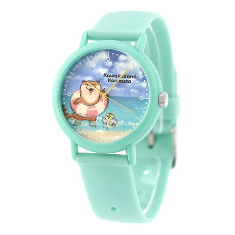 正規品 カオル 可愛い嘘のカワウソ×KAORU 思い出Selection -海- ココナッツの香り 日本製 メンズ レディース 腕時計 KAORU012G2 KAORU アナログ マルチカラー ライトグリーン ◆KAORU(カオル)は、日本の老舗香料メーカー、ゴムメーカー、時計メーカーがタッグを組んで作り上げた時計です。 めぐる季節を楽しむカワウソの愛嬌溢れるアートと、ほんのり甘く香るココナッツの元気な香りに癒される『おもいでSelection』シリーズ。仲良しのカモちゃんと訪れた、海水浴でのひとコマを落とし込みました。広い海ではしゃぐふたりと広い海と空。あたたかなタッチのアートを活かし、身につけて可愛く、日常の中でふと目にするたびに元気になれる腕時計です。