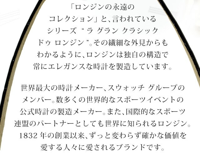 | 付属品 | 取扱説明書・保証書・LONGINESオリジナルボックス |