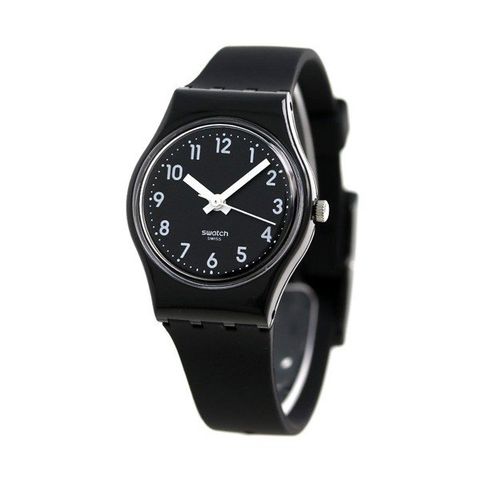 3年保証キャンペーン スウォッチ オリジナル レディ レディ・ブラック・シングル 25mm スイス製 クオーツ レディース 腕時計 LB170E SWATCH ORIGINALS LADY LADY BLACK SINGLE アナログ オールブラック ◆個性と実用性を兼ね備えたスイスウォッチ、「swatch(スウォッチ)」。少ない部品による単純構造をコンセプトに、それに伴う防水性を確保させる構造の答えとして選んだ姿は、ケースを一体化させる形。今やスウォッチといえば、オシャレな雑誌などで紹介され、コアなファンも多く、日本でも幅広い人に愛されています。 小さめのサイズが魅力のモデル。素材にはシリコンを採用。軽く、長時間着けていても疲れにくいです。