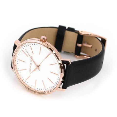 3年保証キャンペーン マイケルコース パイパー 38mm クオーツ レディース 腕時計 MK2834 MICHAEL KORS PYPER アナログ 革ベルト シルバー×ブラック ◆NYファッション業界屈指の大物デザイナーMICHAEL KORS(マイケル・コース)は、1981年に自らの名を冠したブランドを立ち上げました。アメリカン・スポーツウェアをラグジュアリーに仕上げることに定評があり、大勢のセレブリティーを魅了し続けています。彼のブランドには“マイケルコース コレクション”“コース マイケル コース”“マイケル マイケル コース”と3つのラインがあり、ハンドバッグやシューズ、腕時計やアクセサリーなどを展開しています。女性はもちろんのこと、男性にも愛用されているブランドです。 ミニマルトレンドを巧みに取り入れながらも、マイケルコースらしさを感じられるモデル。シンプルながらもエレガントな印象を与える逸品です。入荷時期により、ベルト尾錠の仕様が異なります。予めご了承の上お買い求めくださいませ。