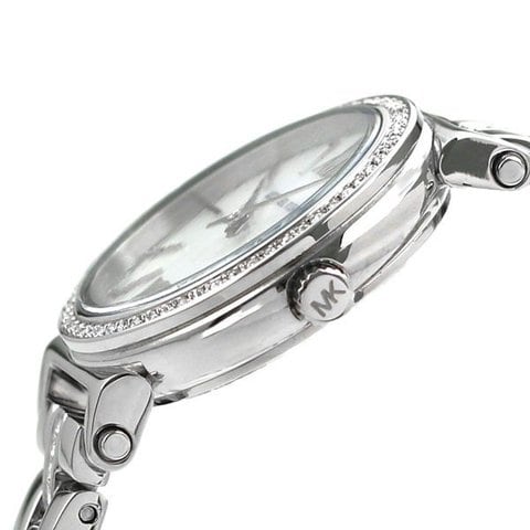 3年保証キャンペーン マイケル コース プチ ソフィー 26mm クオーツ レディース 腕時計 MK3906 MICHAEL KORS PETITE SOFIE アナログ ホワイトシェル ◆NYファッション業界屈指の大物デザイナーMICHAEL KORS(マイケル・コース)は、1981年に自らの名を冠したブランドを立ち上げました。アメリカン・スポーツウェアをラグジュアリーに仕上げることに定評があり、大勢のセレブリティーを魅了し続けています。彼のブランドには“マイケルコース コレクション”“コース マイケル コース”“マイケル マイケル コース”と3つのラインがあり、ハンドバッグやシューズ、腕時計やアクセサリーなどを展開しています。女性はもちろんのこと、男性にも愛用されているブランドです。 文字盤には角度によって輝きを変える白蝶貝を採用。華やかさと、シンプルで洗練されたデザインが特徴です。ベゼルやベルトにはクリスタルを使用しています。結婚式やパーティーなど華やかなシーンにおすすめです。