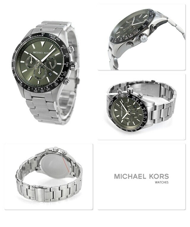 3年保証キャンペーン マイケルコース レイトン 45mm クロノグラフ クオーツ メンズ 腕時計 MK8912 MICHAEL KORS LAYTON アナログ オリーブ ◆NYファッション業界屈指の大物デザイナーMICHAEL KORS(マイケル・コース)は、1981年に自らの名を冠したブランドを立ち上げました。アメリカン・スポーツウェアをラグジュアリーに仕上げることに定評があり、大勢のセレブリティーを魅了し続けています。彼のブランドには“マイケルコース コレクション”“コース マイケル コース”“マイケル マイケル コース”と3つのラインがあり、ハンドバッグやシューズ、腕時計やアクセサリーなどを展開しています。女性はもちろんのこと、男性にも愛用されているブランドです。 オリーブダイヤルに、ブラックのトップリングをあしらったシルバートーンケースとステンレススチールブレスレットを組み合わせました。誕生日や記念日などのプレゼントにもおすすめです。
