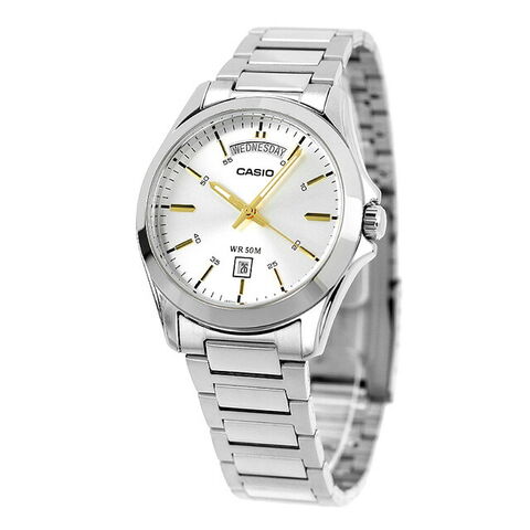 7年保証キャンペーン カシオ CASIO スタンダード チプカシ クォーツ 電池式 海外モデル クォーツ 電池式 メンズ 腕時計 MTP-1370D-7A2VDF Standard アナログ シルバー ◆オーソドックスなフォルムの上質な腕時計です。11時から1時位置まで拡張された日付表示窓は、フルスペルで曜日を表示する実用性と、文字盤に無理なく調和するデザイン性を兼ね備えています。時分針は多面構成で、美観と視認性を両立しているうえ、蓄光塗料が発光するため暗所でも時刻確認が可能です。インデックスは別パーツのアプライドで、針同様に多面的にカットされているので、どの角度から見ても程よく光を反射します。誕生日や記念日などのプレゼントにもおすすめです。 日本未発売モデル