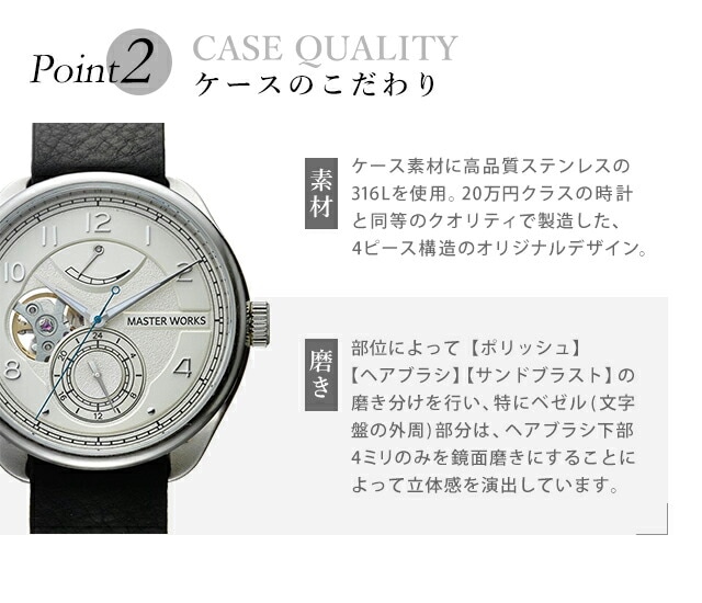 正規品 マスターワークス クアトロ 003 39mm 日本製 クオーツ メンズ 腕時計 MW06SU-ECGYG8 MASTER WORKS Quattro 003 アナログ ラウンド グレー 革ベルト ◆MASTER WORKS(マスターワークス)は、2018年に日本で誕生した日本の腕時計ブランドです。名前の由来は、MASTER(=匠) WORKS(=作品)。「デザインのオリジナリティ」にこだわり、独自の視点で古今東西の職人が生み出した素材やデザインを活用。信頼できる工場で製造し、日本製として恥じない品質を保持します。 シンプルで実用的な機能のみを搭載したエントリーモデル。基本品質は他モデルと同等でハイコストパフォーマンスです。ベルトは、イタリア中部ボローニャ郊外の有名時計革バンド専門工房にて全てハンドメイドで生産されています。カジュアルからスーツスタイルまでシーンを選ばず腕元を飾ります。