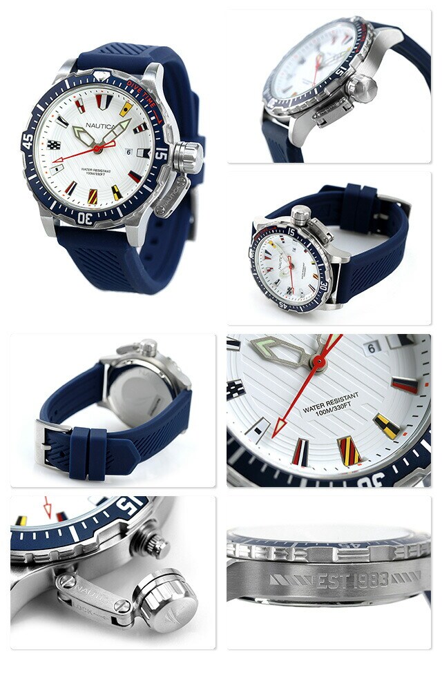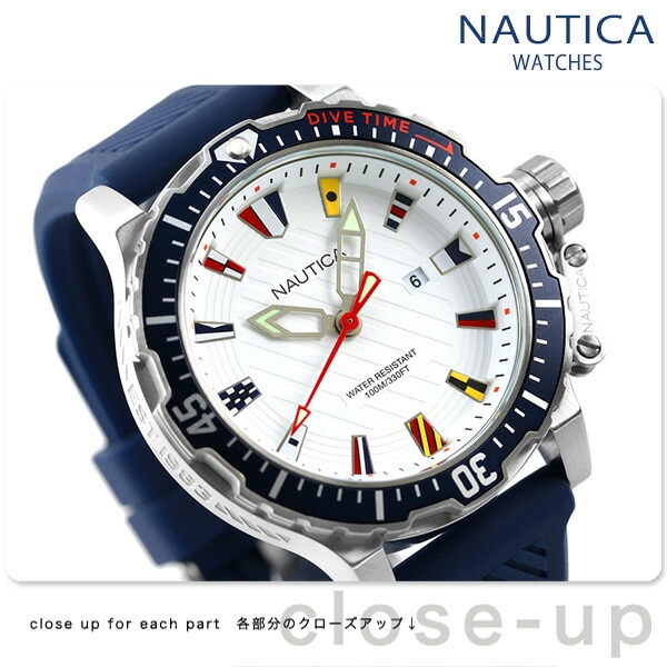 ノーティカ 時計 グレンロック ラグーン 46mm フラッグ 旗 メンズ 腕時計 NAPGLF006 NAUTICA ホワイト×ブルー