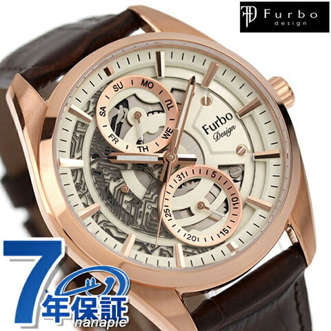 フルボ デザイン ELECTRO クオーツ 腕時計 ブランド メンズ オープンハート Furbo Design NF05W-PGBR オフホワイト スケルトン