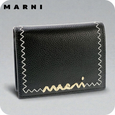 マルニ 二つ折り財布 レディース ブランド MARNI ロゴ 刺繍 ブラック 財布