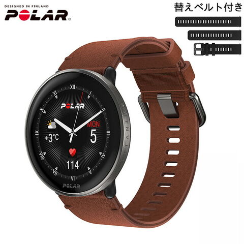 ポラール IGNITE 3 Titan レザー&シリコンセット 充電式クオーツ スマートウォッチ メンズ レディース Bluetooth 替えベルト 革ベルト POLAR 900110028