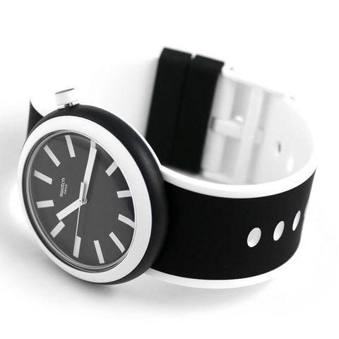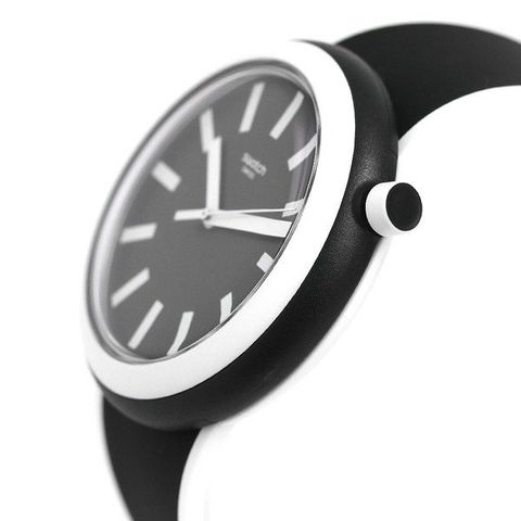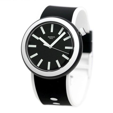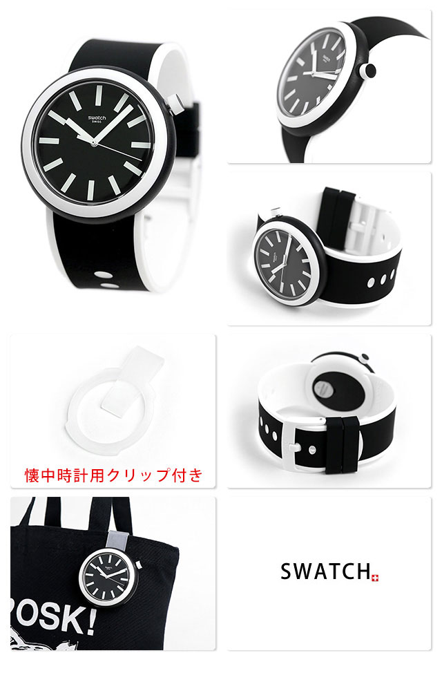 3年保証キャンペーン スウォッチ オリジナルス ポップ ポップルッキング 45mm スイス製 クオーツ ユニセックス 腕時計 PNB100 SWATCH ORIGINALS POP POPLOOKING 45mm アナログ ブラック×ホワイト ◆個性と実用性を兼ね備えたスイスウォッチ、「swatch(スウォッチ)」。少ない部品による単純構造をコンセプトに、それに伴う防水性を確保させる構造の答えとして選んだ姿は、ケースを一体化させる形。今やスウォッチといえば、オシャレな雑誌などで紹介され、コアなファンも多く、日本でも幅広い人に愛されています。 ポップなデザインが魅力のモデル。存在感のある太めのベルトが特徴です。ベルトを持ち、ケース裏から中央を押すことで本体とベルトの取り外しが簡単に行えます。付属のクリップに付け替え、卓上時計、壁掛け時計、ポケットウォッチとしてもお使いいただけます。男女問わずお使いいただけます。