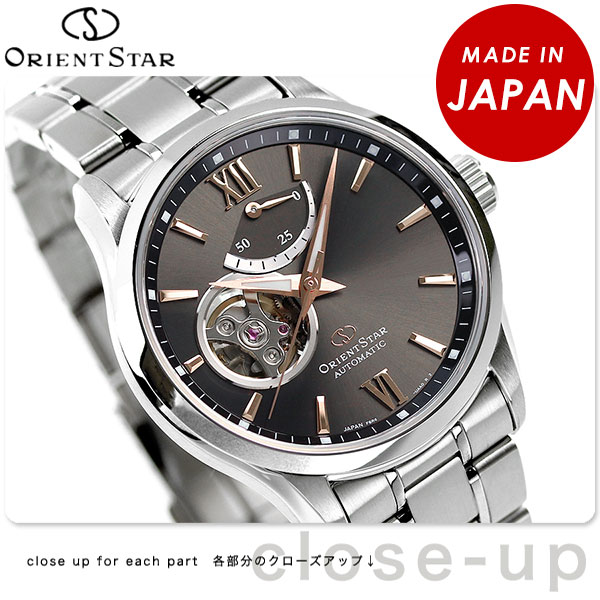 正規品 7年保証キャンペーン 送料無料 オリエントスター コンテンポラリー セミスケルトン オープンハート 日本製 自動巻き メンズ 腕時計 RK-AT0009N ORIENT STAR CONTEMPORARY SEMI SKELETON アナログ ラウンド グレー ◆オリエントスターは、1950年のオリエント創業と同時に輝ける星として生まれた代表的なブランドにふさわしく、歴史に裏付けされた技術と、ディテールにまで配慮した粋なデザインの機械式時計を展開。ベーシックモデルからハイスペックモデルまで多彩なラインナップが魅力です。 セミスケルトンからパワーリザーブが約50時間以上になったモデルが登場。ベゼルを細くすることで、文字盤が広くなり視認性が向上。9時位置にあるテンプ部分は、よりはっきり見えるセミスケルトンに変更しました。高級感あふれるデザインとスケルトンから覗くムーブメントがワンランク上の腕元を演出。スーツスタイルから、休日の大人カジュアルまで幅広く合わせることができるウォッチです。 発売日:20年10月発売 機械式腕時計 Made in Japan