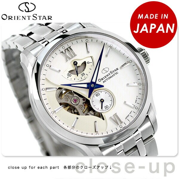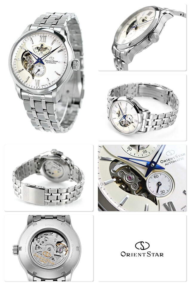 正規品 7年保証キャンペーン 送料無料 オリエントスター コンテンポラリーコレクション レイヤードスケルトン オープンハート 日本製 自動巻き メンズ 腕時計 RK-AV0B01S ORIENT STAR CONTEMPORARY Layered Skeleton アナログ シルバー ◆男性のこだわりを演出する色気あるビジネススーツスタイルをモチーフに、動きのある重なり(レイヤード)やテキスタイルの表情を落とし込んでデザイン。二枚文字盤によるレイヤー構造はスーツの表裏の表情の違いや重ね着による動きを表現しています。上の文字盤には、シャツやスーツの生地で使われているヘリンボーン柄印刷を採用。左右の綾でツヤあり・ツヤなしを分けることにより、織生地のように光の当たり方で表情が変化します。ケース形状は独特のくびれのあるデザインに仕上げ、スーツスタイルが醸し出す色気のあるドレープ感を表現。ベルトはクラシカルな印象を与えつつ、駒のピッチを短くしたことで腕なじみの良さをドレッシーなデザインを両立しました。 発売日:21年3月発売 機械式腕時計 Made in Japan