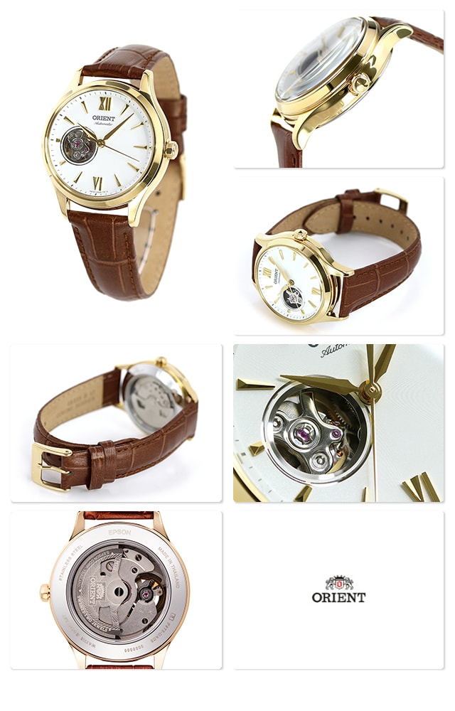 正規品 7年保証キャンペーン 送料無料 オリエント クラシック オープンハート 自動巻き ペアウォッチ レディース 腕時計 RN-AG0728S ORIENT CLASSIC アナログ 革ベルト ホワイト×ブラウン ◆オリエントクラシックシリーズは、末永く愛されているオリエントならではのデザイン・工法を踏襲したコレクションです。 美しくクラシカルな雰囲気の、本格メカニカルウォッチ。ローマ数字のインデックスと、9時位置の部分スケルトンから覗くムーブメントがワンランク上の腕元を演出します。大人の落ち着きと高級感にあふれ、スーツなどフォーマルなスタイルにはもちろんカジュアルスタイルをより上品に演出してくれます。結婚記念日や誕生日などのプレゼントにはもちろん、メンズとのペアウォッチとしてもおすすめです。 発売日:20年3月発売 機械式腕時計