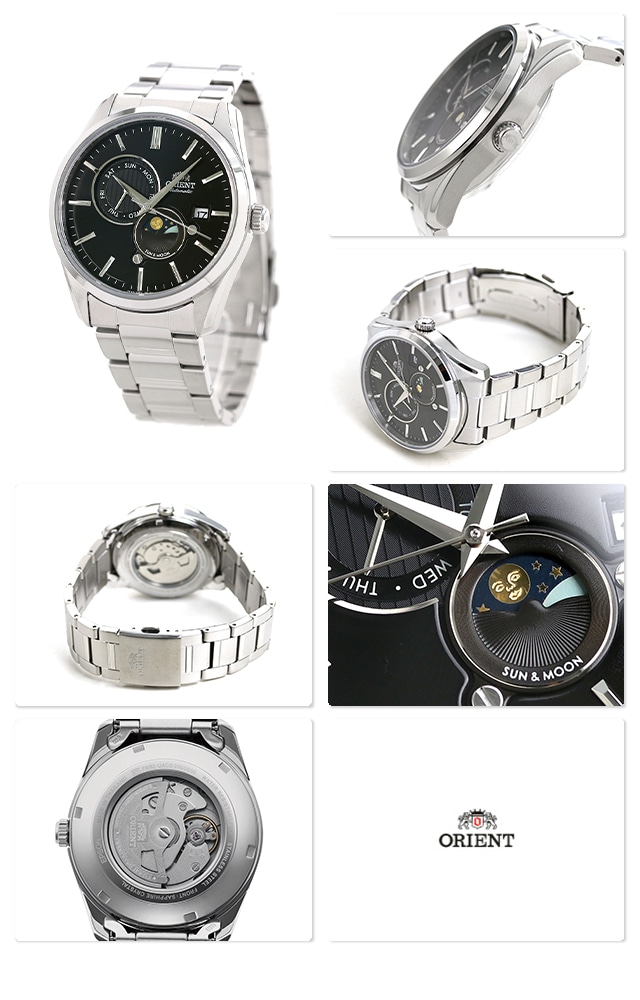 オリエント 自動巻き サン&ムーン メンズ 腕時計 RN-AK0302B ORIENT 時計 機械式 ブラック