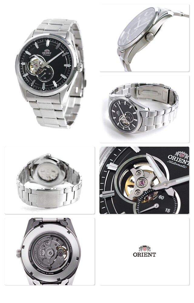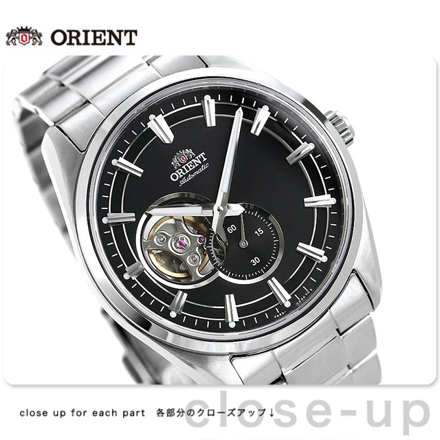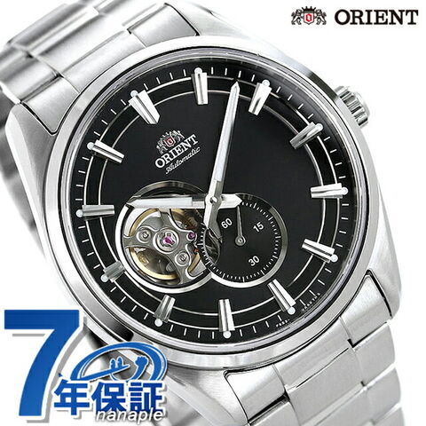 正規品 7年保証キャンペーン 送料無料 オリエント コンテンポラリー セミスケルトン オープンハート 自動巻き メンズ 腕時計 RN-AR0001B ORIENT CONTEMPORARY SEMI SKELETON アナログ ブラック ◆オリエントより、46系F6ムーブメントに小秒を搭載したセミスケルトンのモデルがコンテンポラリーコレクションに登場。エッジの効いたケースに、9時位置のセミスケルトンと6時のスモールセコンドが特徴の立体的なダイヤルが魅力。カジュアルからスーツスタイルまでシーンを選ばず腕元を飾ります。また、裏蓋もスケルトン仕様になっており、ムーブメントを眺められ、お楽しみいただけます。 Made in Japan 発売日:18年4月発売 機械式腕時計