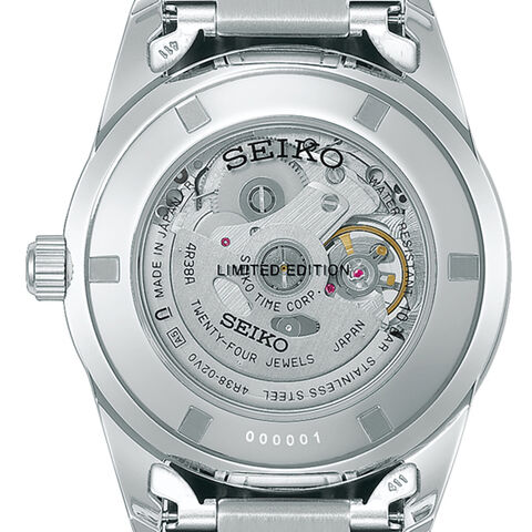 | 仕様 | 日常生活用強化防水(10気圧) 平均日差+45秒~-35秒 駆動期間:最大巻上時約41時間持続 耐磁あり 石数 24石 秒針停止機能 シースルーバック スクリューバック ダブルロック中留 オープンハート 裏ぶた「LIMITED EDITION」表記 数量限定1000本 日本製 |