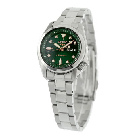 正規品 7年保証キャンペーン 送料無料 セイコー5 スポーツ 日本製 レディース 腕時計 SRRA005 Seiko 5 Sports SKX Series アナログ グリーン ◆国内未発表モデルとなるSKXシリーズ(28mm)が登場。スポーティなダイヤルレイアウトが魅力的なスモールサイズが特徴。4R36と同じスペックを持った2R06を搭載し、ケース径28mmにダウンサイジング。 海外市場で定番となる人気のカラーリングを採用し、ゴールドのアクセントカラーがポイント。メタルブレスレットの中駒を鏡面に仕上げ、スポーティながらも華やかな印象を演出。シンプルなデザインでシーン問わずお使いいただけ、プレゼントにもおすすめです。 発売日:2024年12月発売