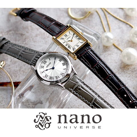 正規品 7年保証キャンペーン 送料無料 セイコーセレクション ナノユニバース コラボレーション レディース 腕時計 SEIKO SELECTION NANO universe アナログ 選べるモデル ◆人気セレクトシップ「ナノ・ユニバース」とコラボレーションをしたモデル。レザーストラップ色、ガラス入りりゅうず色、ダイヤルカラー等を「ナノ・ユニバース」がセレクト。「ナノ・ユニバース」らしい拘りの配色は落ち着いた雰囲気を持ち、日頃のどんなファッションにも相性抜群です。ダイヤルには、懐かしい雰囲気の太くはっきりとした、オールローマ数字のインデックスを採用。【スクエア型】オールローマ数字のダイヤルには、「もみつけ」という技法でキラッとしたワンポイントを付けました。針はリーフ針にすることで、柔らかい印象に仕上げています。【ラウンド型】ダイヤル中央に施された放射状の型打ちと、外周部ミニッツレール上に配置されたキラリと光る12箇所の金属パーツがダイヤル全体に立体感と高級感を与えます。針は、スペード針にすることで、柔らかい印象に仕上げています。 SSEH002 SSEH004 SSEH006 SSEH001 SSEH013 SSEH014 SSEH011