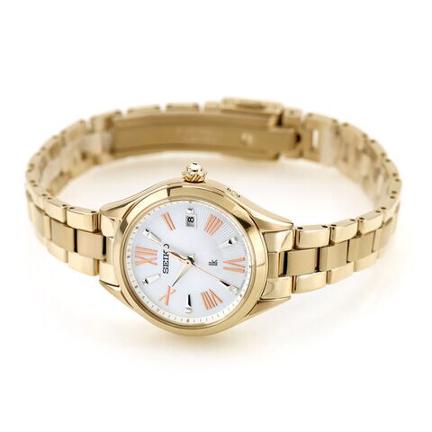 | 仕様 | 日常生活用強化防水(10気圧) 非受信時:平均月差±15秒 駆動期間:フル充電時約6ヶ月間 パワーセーブ時約1.5年 耐磁あり 過充電防止機能 即スタート機能 パワーセーブ機能 フルオートカレンダー機能(2099年12月31日まで) 電波修正機能(日本・中国・アメリカ・ドイツの標準電波を受信) 自動受信機能 強制受信機能 受信結果表示機能 時差修正機能 針位置自動修正機能 日付表示 クリスタルガラス入りりゅうず 耐ニッケルアレルギー ラボグロウン・ダイヤ入り白蝶貝ダイヤル 日本製 |
