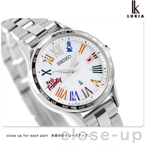 正規品 7年保証キャンペーン 送料無料 セイコー ルキア セイコールキア 30周年記念 MR.FRIENDLY コラボレーション限定モデル 数量限定モデル 替えベルト 日本製 レディース 腕時計 SSVV089 SEIKO LUKIA Grow アナログ ホワイト 白 ◆2025年LUKIA誕生30thを祝う記念企画。MR.FRIENDLYとのコラボレーションモデルが誕生! MR.FRIENDLYは、1988年に“友達と仲良くしようね”というコンセプトをもったソシアルキャラクターとして誕生。「世界中のひとびとにハッピーを届けたい!人間も、動物も、樹木や植物も、すべての自然が仲良しでいたい!」という想いのもと、見ればやさしい気持ちになれるその表情と楽しい色使いが幅広い年代から支持を得ているキャラクターです。デザインテーマは“LOVE & PEACE”と“BE HAPPY!”。時計の各所にさりげなく施されたMR.FRIENDLYがほほえみ、身に着ける人をハッピーにさせる時計です。随所でキャラクターを楽しめる特別なモデルです。 発売日:2025年4月発売