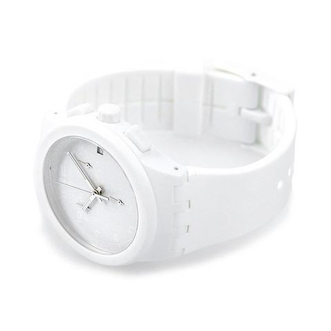 3年保証キャンペーン スウォッチ オリジナルズ クロノ プラスチック ベーシック ホワイト 42mm クロノグラフ スイス製 クオーツ ユニセックス メンズ レディース 腕時計 SUSW400 SWATCH Originals Chrono Plastic BASIC WHITE アナログ ホワイト ◆個性と実用性を兼ね備えたスイスウォッチ、「swatch(スウォッチ)」。少ない部品による単純構造というコンセプトと、それに伴う防水性を確保させる構造が大きな鍵となった。答えとして選んだ姿は、ケースを一体化させる形。今やスウォッチといえば、オシャレな雑誌などで紹介され、コアなファンも多く、日本でも幅広い人に愛されています。 日付表示、スモールセコンド、クロノグラフ機能が特徴のモデルです。POPなデザインで、男女ともにお使い頂けます。