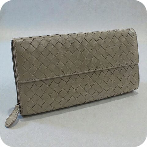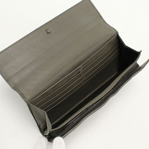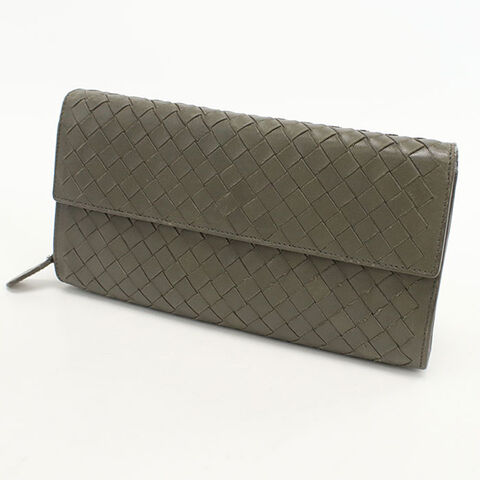 中古 ボッテガヴェネタ 長財布二折 レディース ブランド BOTTEGA VENETA イントレチャート ラージ フラップウォレット カーキ 財布