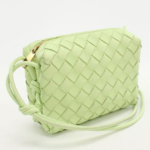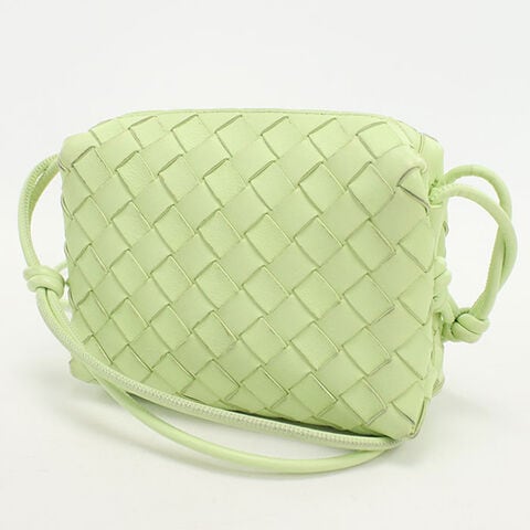 中古 ボッテガヴェネタ ショルダーバッグ レディース ブランド BOTTEGA VENETA イントレチャート レザー グリーン バッグ