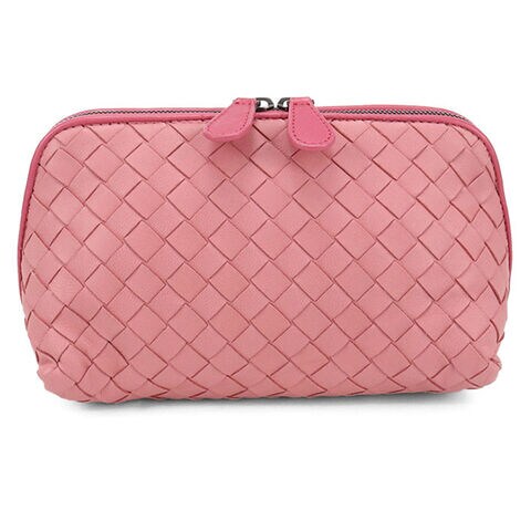 中古 ボッテガヴェネタ ポーチ レディース ブランド BOTTEGA VENETA イントレチャート レザー 132534 ピンク バッグ