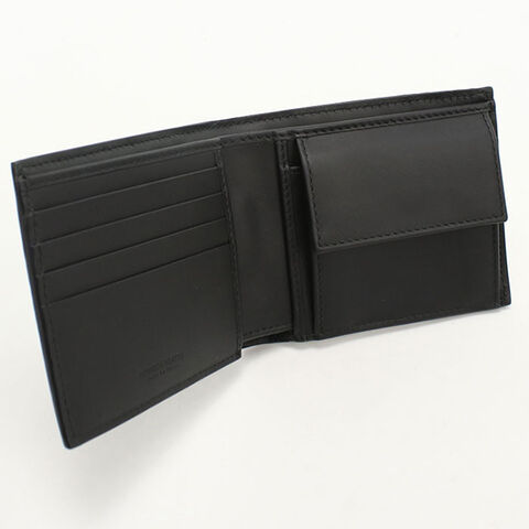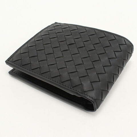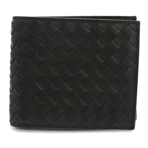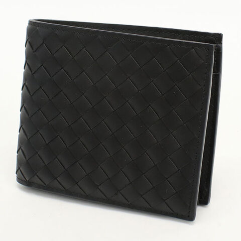 中古 ボッテガ・ヴェネタ 二つ折り財布 二折財布 メンズ ブランド BOTTEGA VENETA イントレチャート ブラック