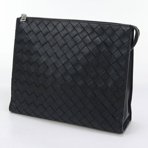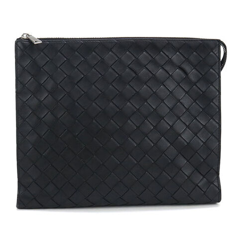 中古 ボッテガヴェネタ クラッチバッグ メンズ ブランド BOTTEGA VENETA イントレチャート レザー ブラック バッグ
