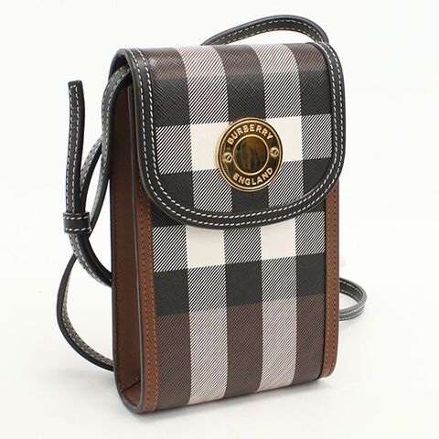 中古 バーバリー 斜め掛け ショルダーバッグ レディース ブランド BURBERRY フォンポーチ レザー ブラウン バッグ