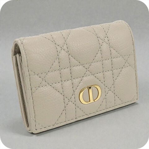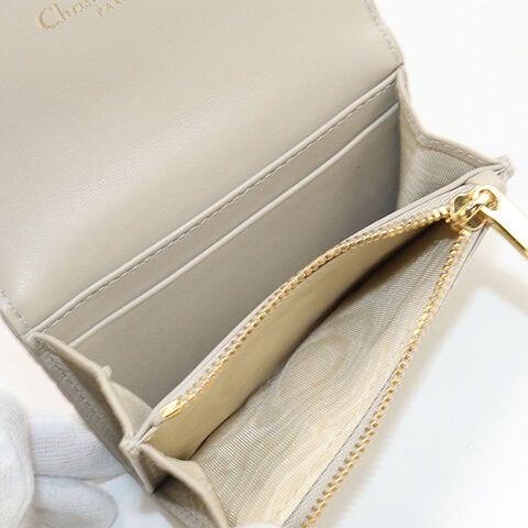 中古 ディオール 二つ折り財布 レディース ブランド Dior ディオール カロ Glycine ウォレット レザー ベージュ 財布