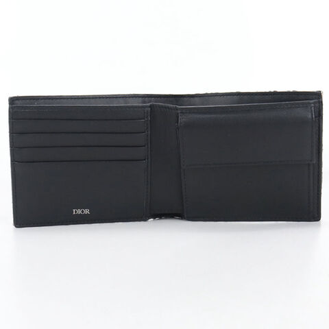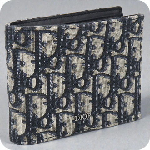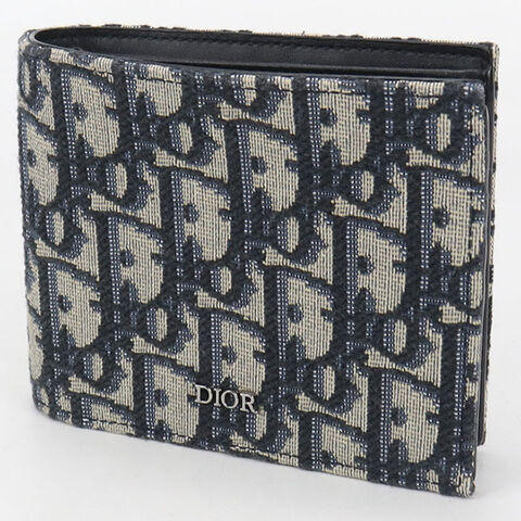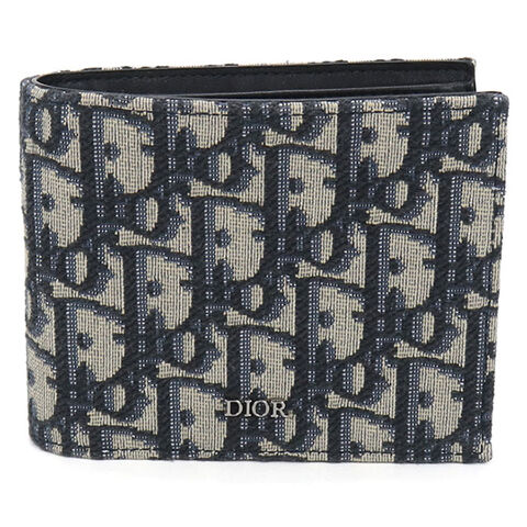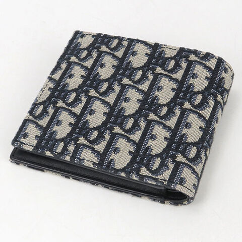中古 ディオール 二折財布 メンズ ブランド Dior ディオールオブリーク コインケース付きウォレット ネイビー 財布