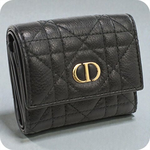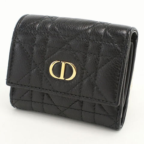 中古 ディオール 三つ折り財布 レディース ブランド Dior ディオールカロ ブラック 財布