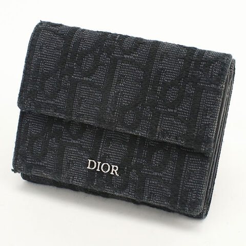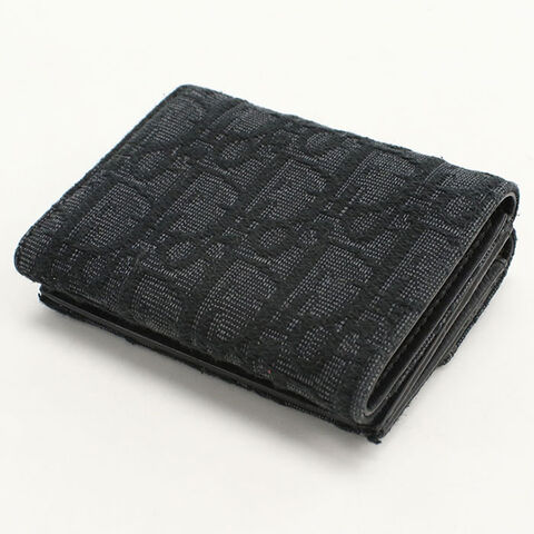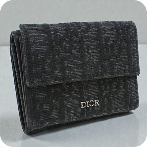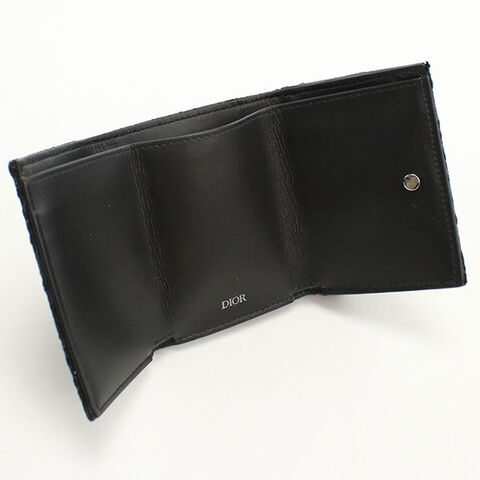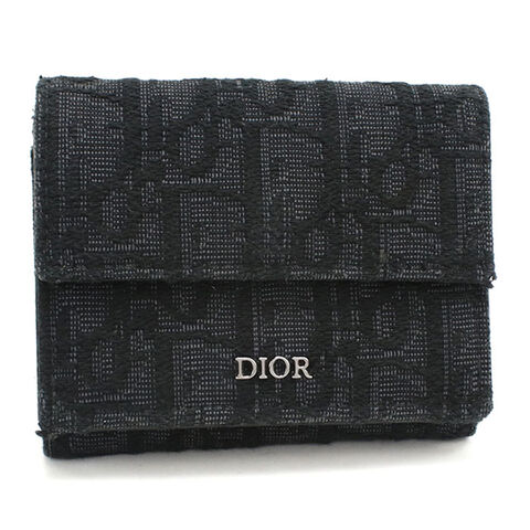 中古 ディオール 三つ折り財布 メンズ ブランド Dior ディオールオブリーク ブラック 財布