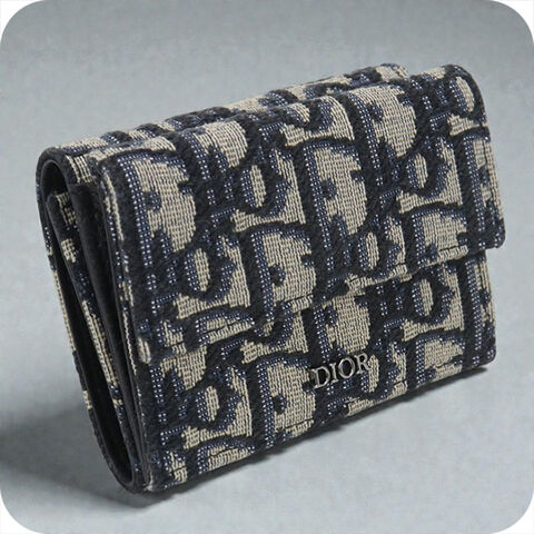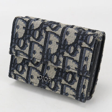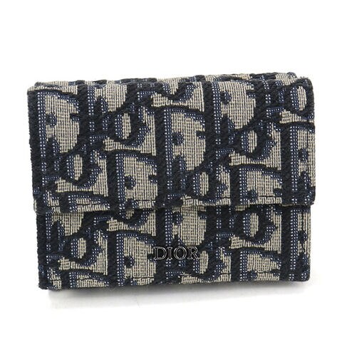 中古 ディオール 三折財布 レディース ブランド Dior ディオール オブリーク 三つ折り ウォレット ネイビー 財布