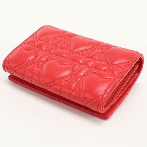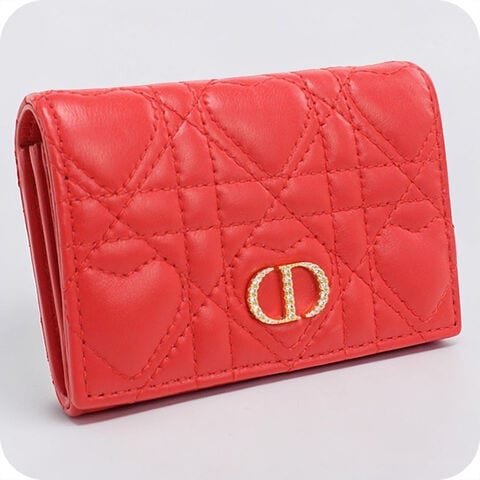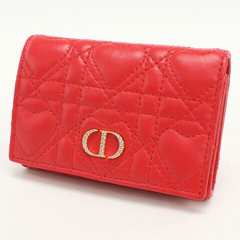 中古 ディオール 二つ折り財布 二折財布 レディース ブランド Dior ディオール カロ グリシンウォレット レッド 財布